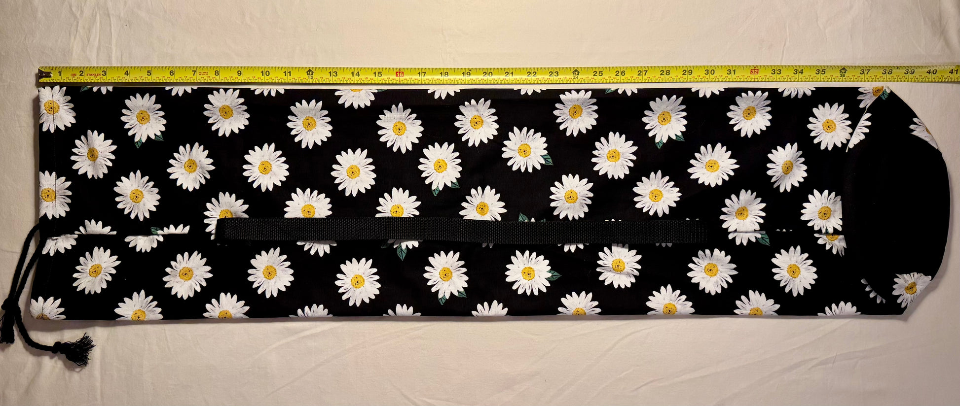 Approximate bag size: 39" tall x 11" wide with 5 1/2" round black cotton canvas bottom