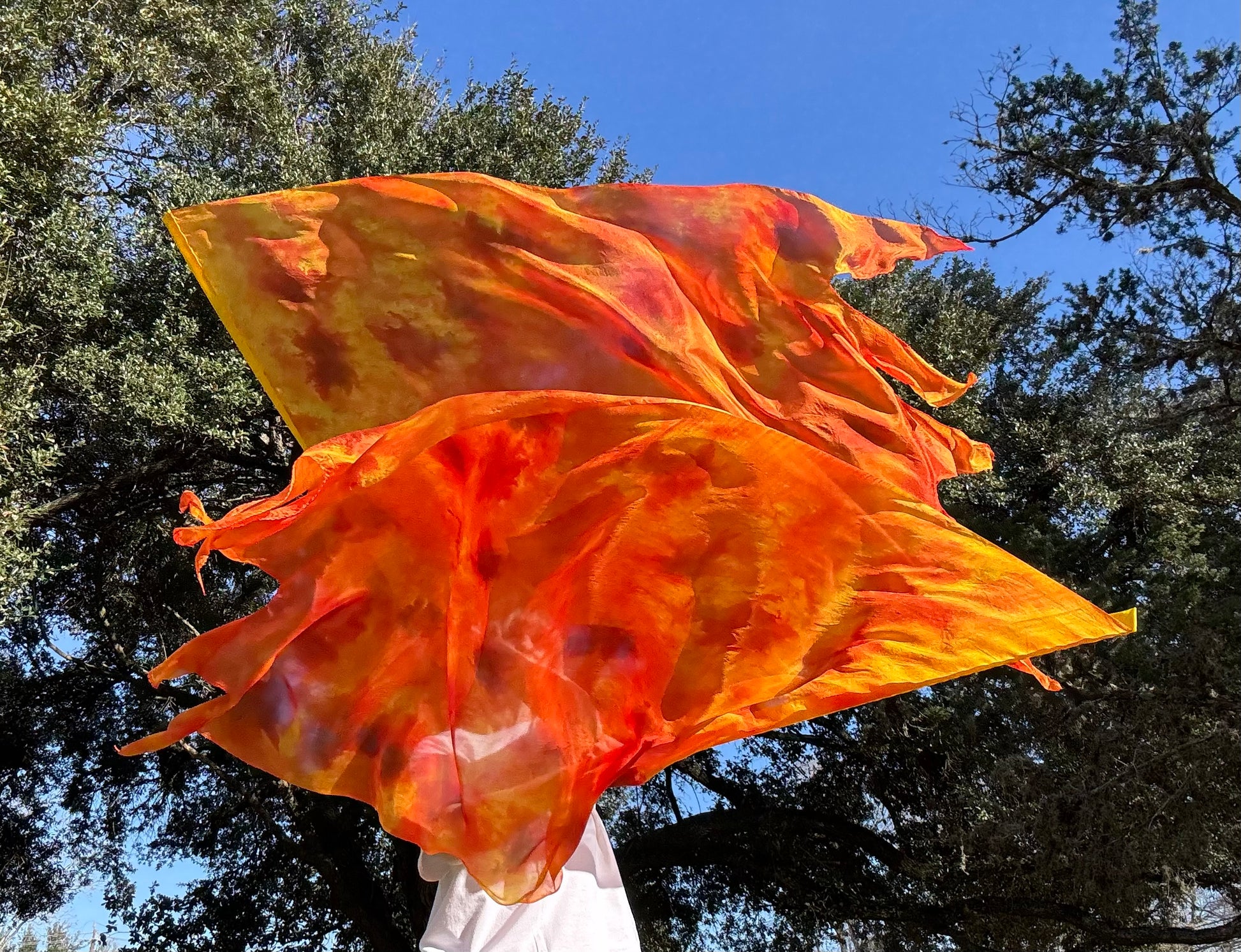 Hand dyed silk flags with Flames